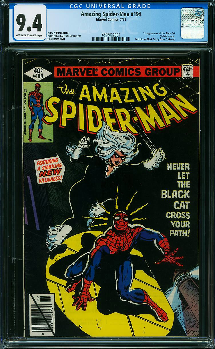 07/1979 Art Comments Marv Wolfman storyKeith Pollard & Frank Giacoia artAl Milgrom cover Key Comments 1st appearance of the Black Cat(Felicia Hardy).Text illo. of Black Cat by Dave Cockrum. Grader...